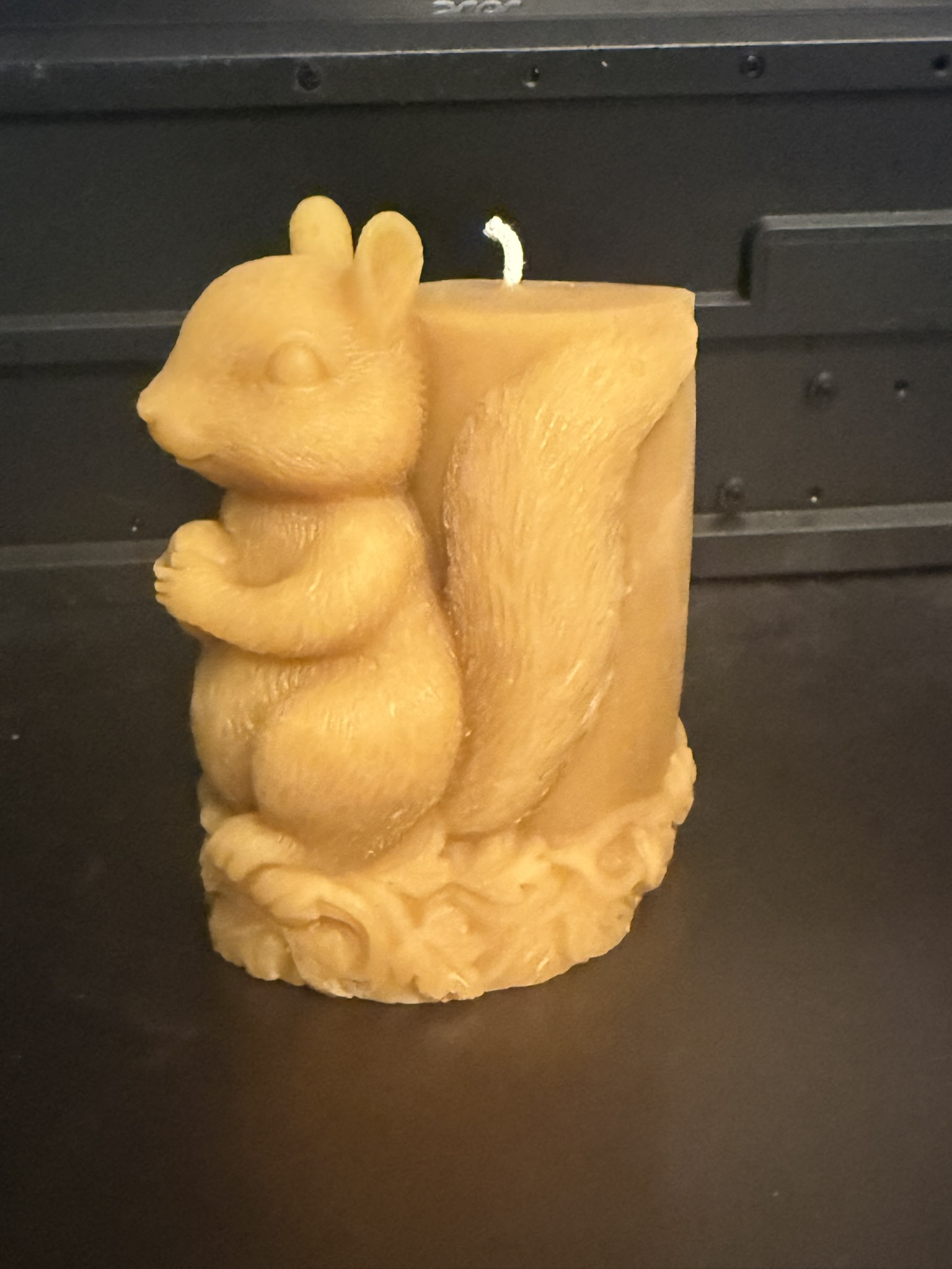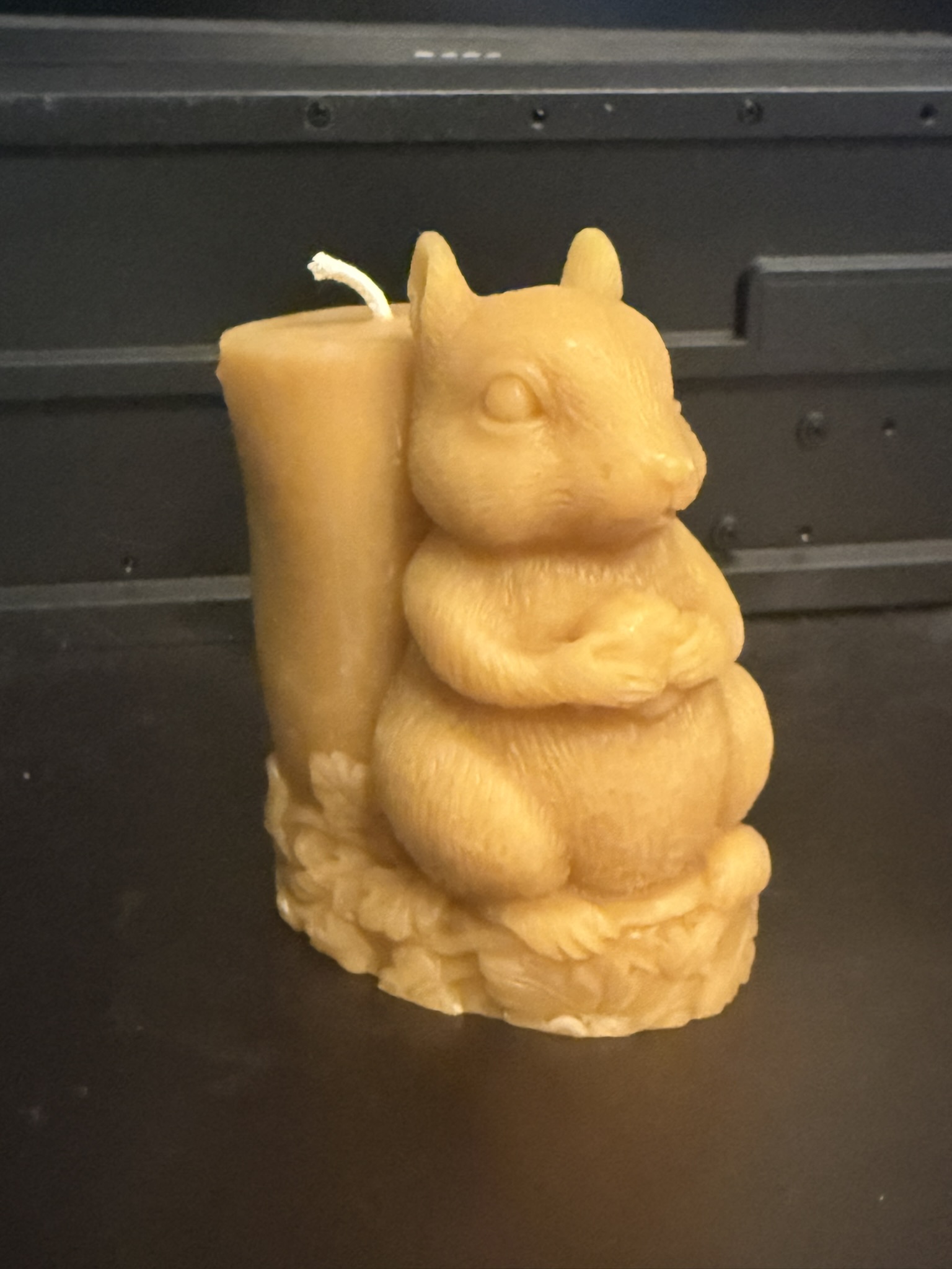 This large squirrel has over 1/2 a pound of wax with his back against a pillar